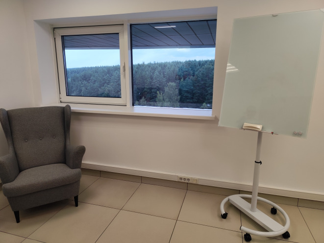 Стеклянные маркерные доски, пледы, чай, конфеты, салфетки и другое для комфортной работы.